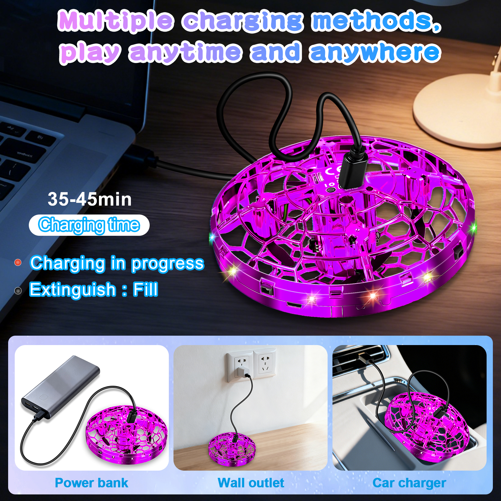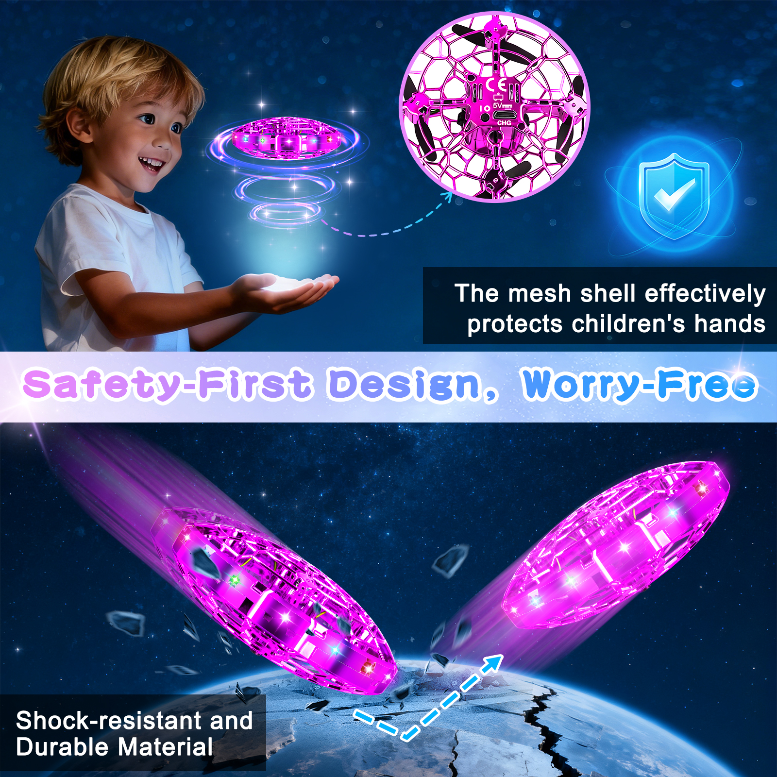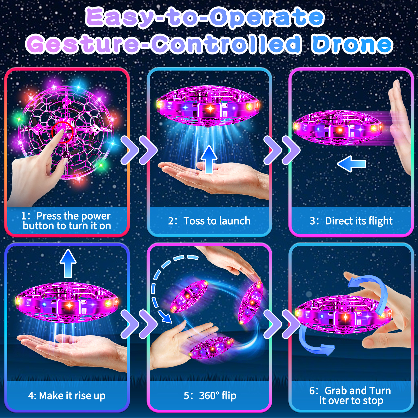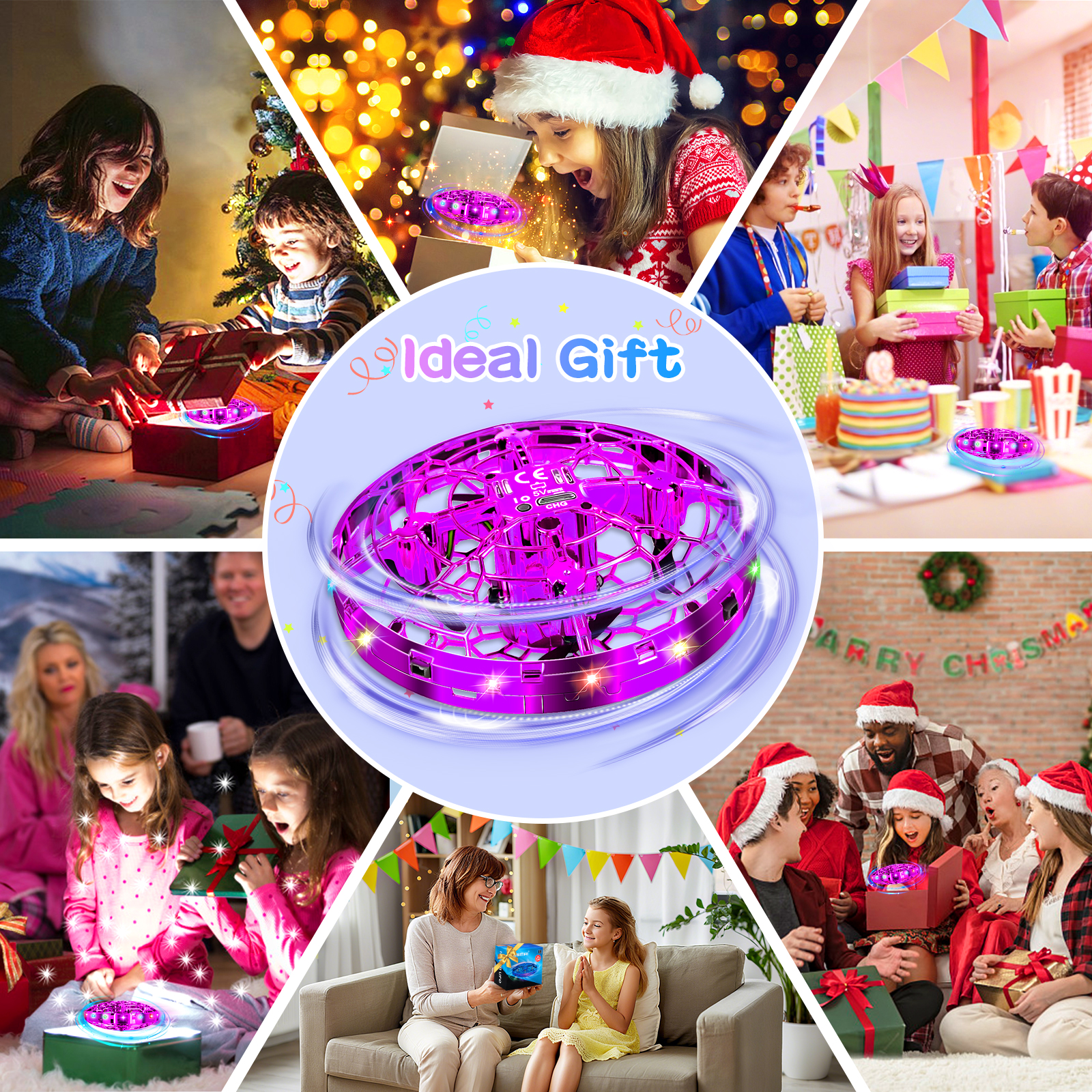 Drone for Kids, 2025 Upgrade Flying Toys with LED, Hover Boomerang Mini Drone, Hand Operated UFO Flying Orb Ball, Christmas Birthday Gifts for 6 7 8 9 10 11 12+ Girls Indoor Outdoor (Purple)